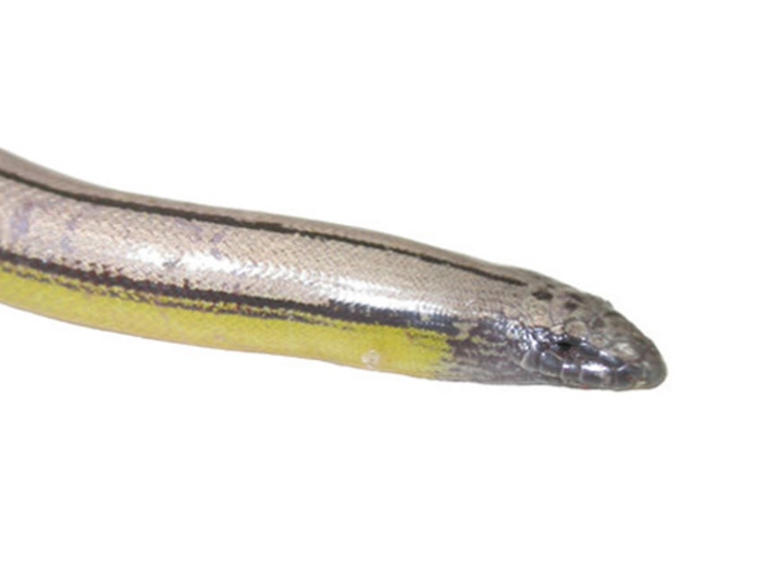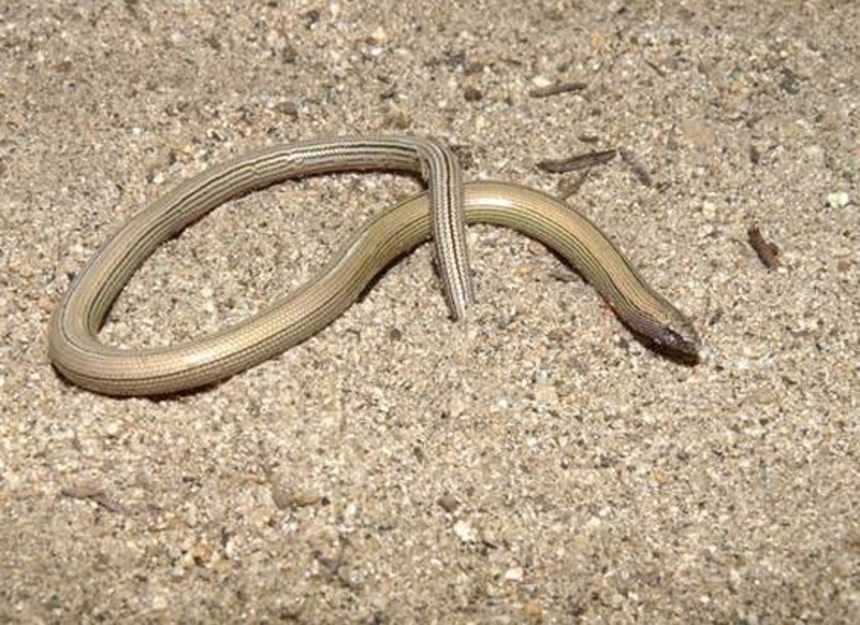 この画像を大きなサイズで見るアシナシトカゲは、世界で200種以上が生息していると言われている。柔らかい地面にもぐる習性があり、細く先のとがった鼻で砂地にいる小さな虫やシロアリなどを嗅ぎ分け捕食する。