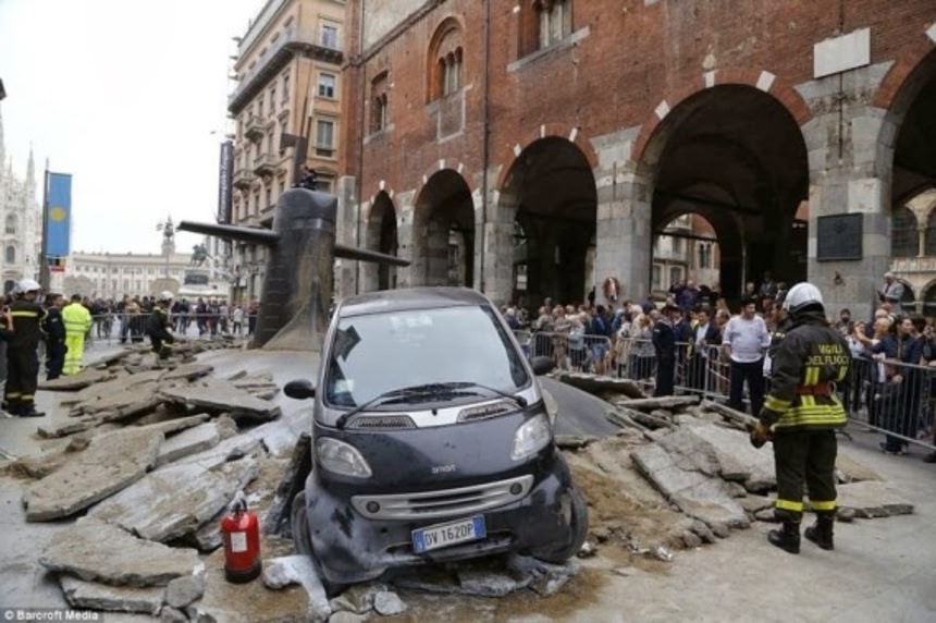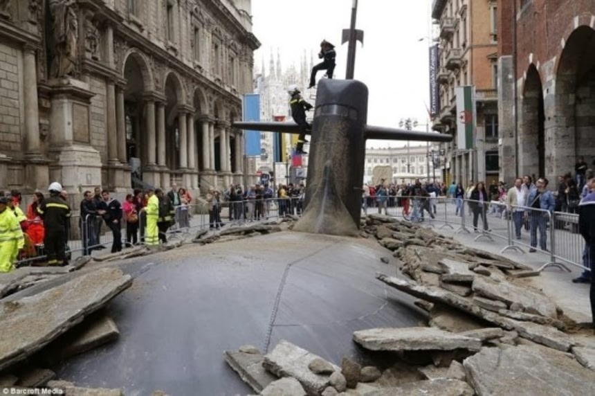イタリア、ミラノの中心街、ミラノ通りで突如潜水艦「#L1F3」が浮上。警察は大急ぎで現場を封鎖。混乱した船員が潜水艦から出てくるわ、通行人はタンカーではこばれるわ、街はひっちゃかめっちゃかな状態に。