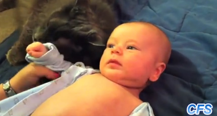 赤ちゃんも猫が大好き