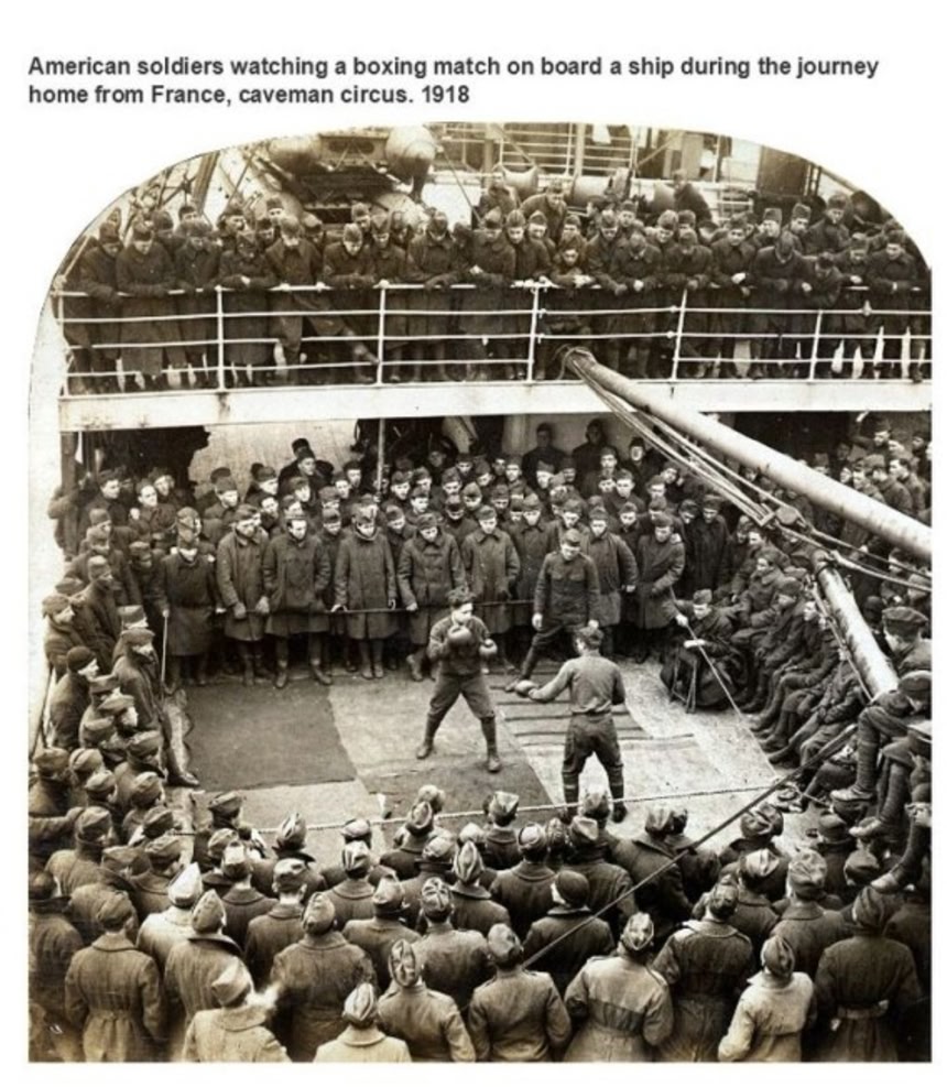 この画像を大きなサイズで見るフランスから母国に帰る船旅の合間にボクシング観戦をする米兵達