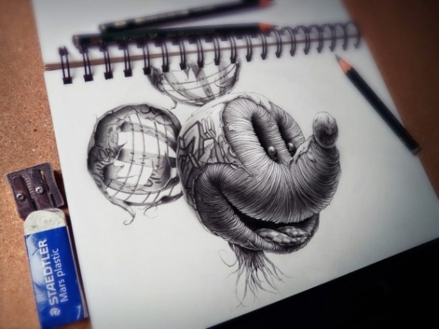 フランスのグラフィックデザイナーPEZ氏が描いたのは、アニメやゲームの人気のキャラクターたちを独自の着眼点で精密に描いたグラファイト図。神経組織を張り巡らしたようなその糸目状の顔の中にはそれぞれに独特の世界観が展開されている。