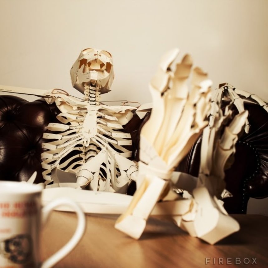 吹けば飛ぶようなパートナーかもしれないが、人生の一時を共に過ごすなら十分すぎる等身大の骸骨。作る楽しみから寄り添う楽しみまで、寄り添い過ぎてグシャっと潰れちゃう人生のはかなさまでをも学習できる、紙でできたペーパークラフトの骨格標本がネット販売中だ。