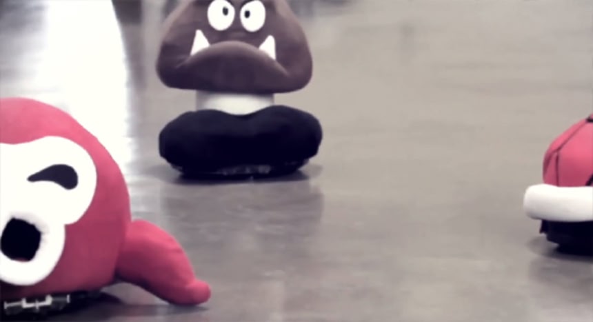部屋の中をちょこまかと動き回ってお掃除してくれる、お掃除ロボットルンバに、スーパーマリオブラザーズ的なカバーをつけてあげたところ、ちょっとしたゲーム画面状態となって、思わず蹴ったり飛ばしたりしたくなってしまったそうだ。