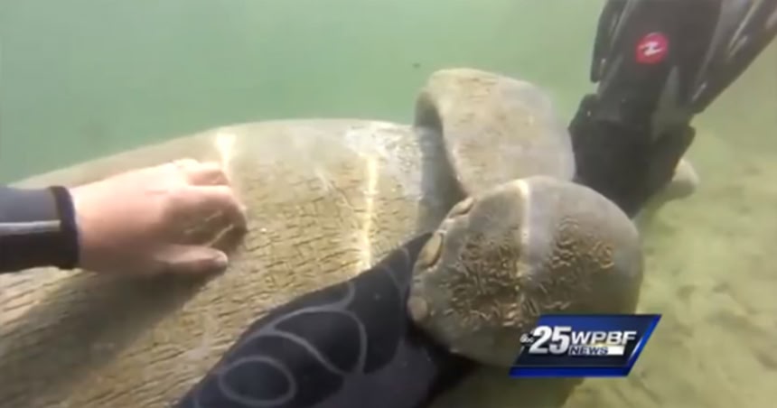 ちなみにフロリダ州ではマナティーに害を与えたり意地悪することは法律で禁止されているそうだが、向こうから寄ってきちゃった場合には例外だそうで、いじめているわけではなくどう見てもかわいがっているのでこのダイバーはマナティーにたっちんぐしても罰せられないそうだ。