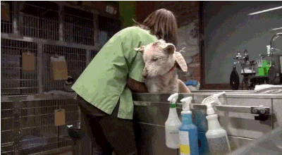 この画像を大きなサイズで見るママイリーは疥癬や寄生虫、細菌感染などに侵されており、栄養失調状態だった。殺菌剤の入った風呂に入れて消毒し、たくさんの傷を治療するためにも抗生物質を摂取させる必要があった。
