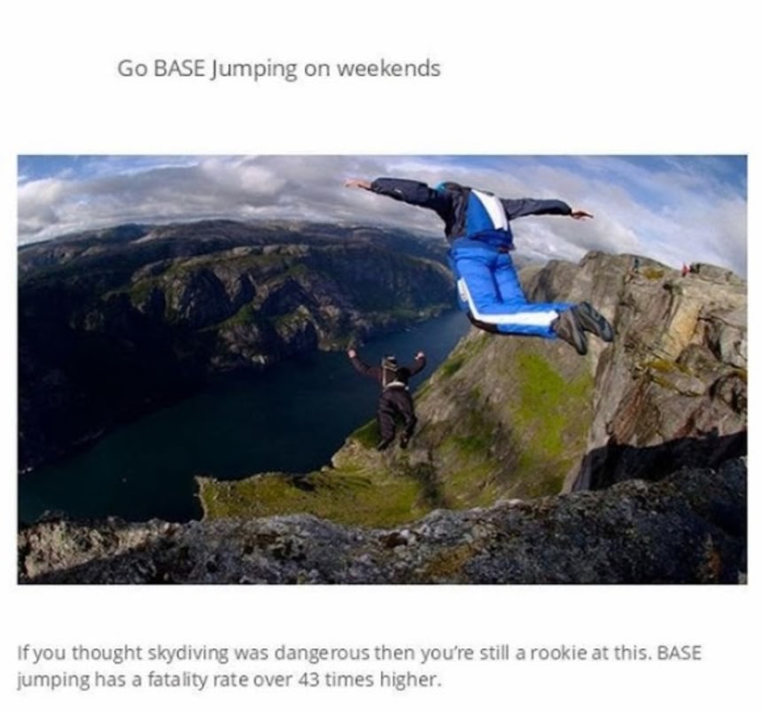4.毎週末、高所から飛び降りるスポーツをしに行く。