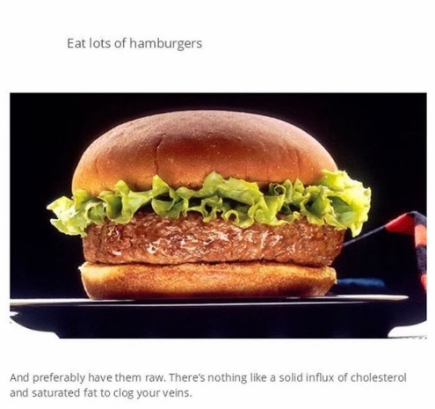 この画像を大きなサイズで見るできれば生焼けの肉が好ましい。あなたの血管を詰まらせるコレステロールの塊や飽和脂肪は寿命を縮めるのに最適だ。