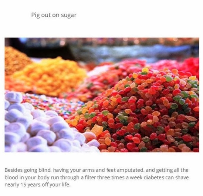 この画像を大きなサイズで見る目が見えなくなっても、手足を切断しても、一週間に三度、体中の血液を透析するはめになっても、糖尿病になってしまえば寿命をほぼ15年縮められる。