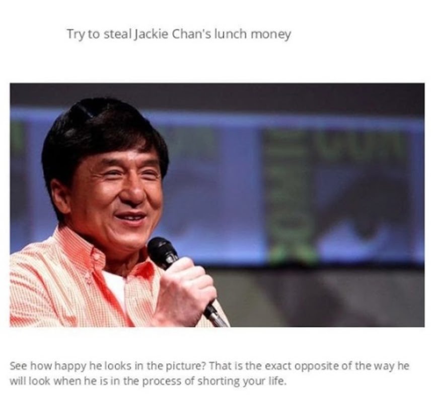 この画像を大きなサイズで見るこの写真のジャッキーはなんとも幸せそうな穏やかな顔をしている。が、あなたの寿命を縮めようとしているときの彼の顔はまるで正反対になるはずだ。