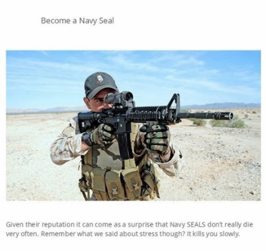 この画像を大きなサイズで見る訓練の厳しさで有名なSEALで、しょっちゅう死者が出ないことのほうが驚きだ。ストレスがあなたの体に及ぼす影響を思い出して欲しい。じわじわと緩慢な死が待っている。