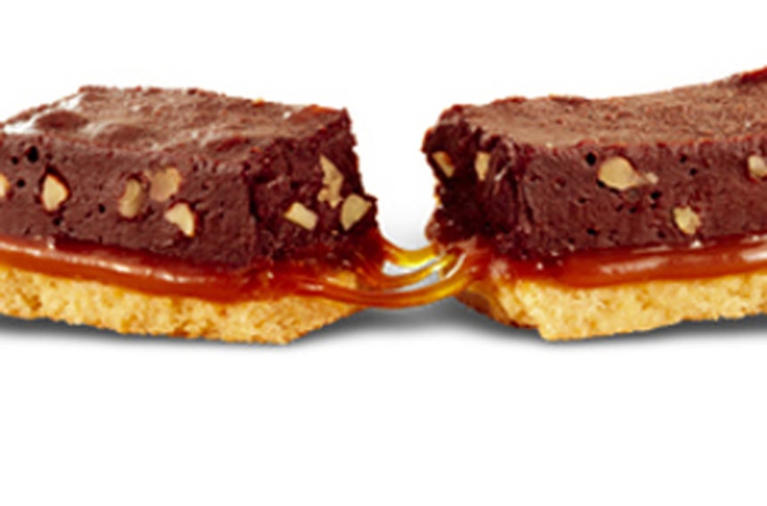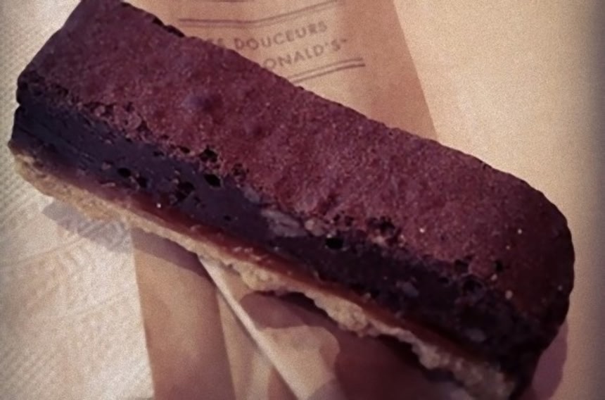 この画像を大きなサイズで見るフランスのマクドナルドにはブラウニーのスティックがある。トロッとしたキャラメルをブラウニーとクッキーでサンドしてあるのが特徴だ。