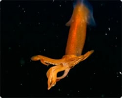 この画像を大きなサイズで見る今回、米カリフォルニア州モントレー湾水族館研究所の研究者らは、コウモリダコが、この長い触手を釣り糸のように使用し餌をとっているのを観測した。