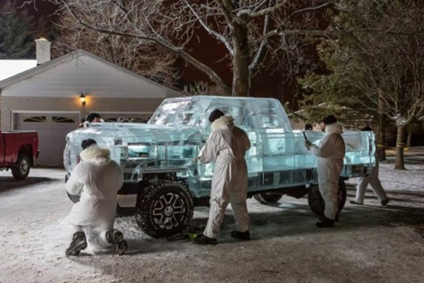 カナダのカナディアン・タイヤ社がギネス記録を目標として作り出したという、ボディーが氷で作られたアイス・トラック。その製作過程と走行中の映像、そしてはかなくもボディーが溶けていく解体ならぬ解凍映像が公開されていた。