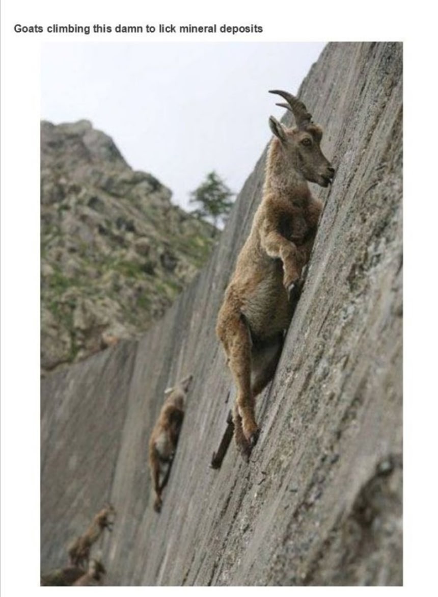 この画像を大きなサイズで見る14.崖に含まれているミネラル成分をなめるため崖にのぼるヤギ