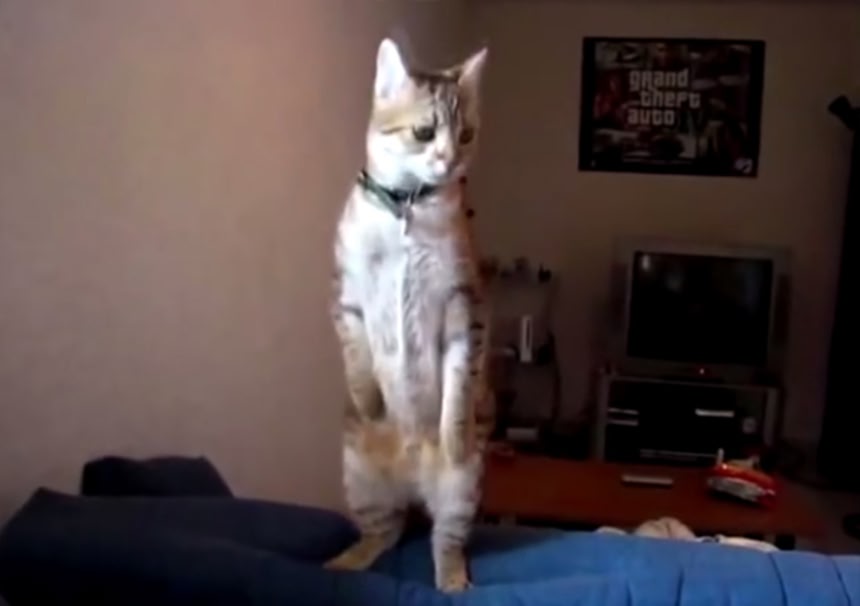 南東ヨーロッパにあるセルビア共和国の国民である猫の場合には、セルビアの国歌が流れると、このように直立不動となり、その姿勢を崩すことなくちょびっとだけ肉球敬礼めいたこともするらしい。