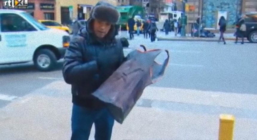 寒波の続いていたアメリカで、バナナで釘ならぬ、シャツで杭を打っちゃった映像が公開されていた。
