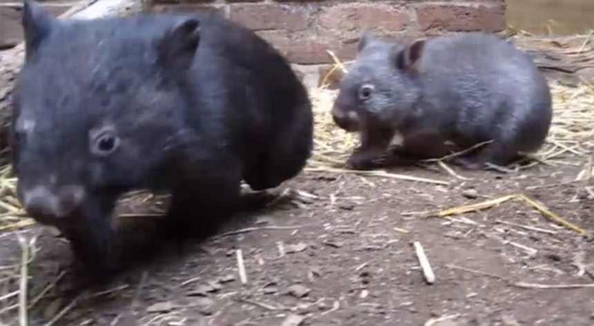 ウォンバットが人懐こいという話は前にもしたかと思うが、幼少時代からこんな感じみたいだね。2匹ともお兄さんにロックオンしつつ、走り回ってる。