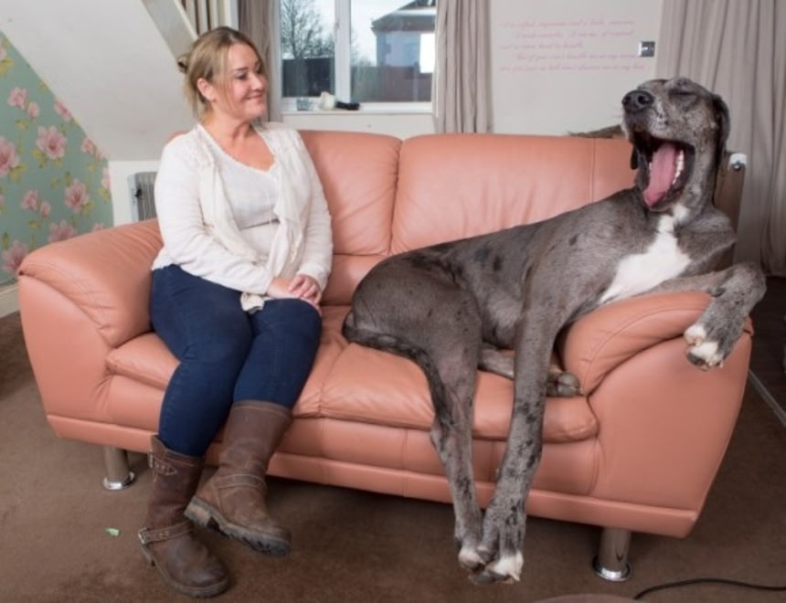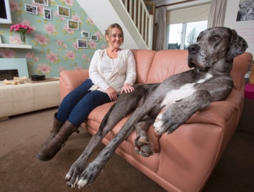グレートデンってわりに首があって足が長めの犬種だからそこは世界一になるんだろうけど、体重と胴体の大きさを考えたらそれほど巨体ってわけでもないような