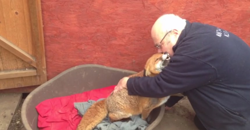 この狐が野生に戻れないのはおじいさんにも問題があるw愛情注入しすぎw