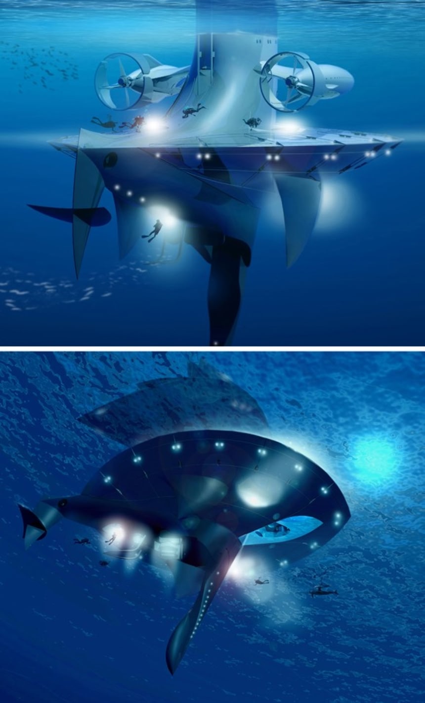 その下には、1000mまで潜ることができる潜水艇と、6000mまで潜ることができる