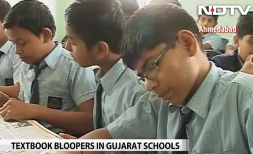 この画像を大きなサイズで見るインド、グジャラート州の中学校で約5万人もの生徒たちが使用している、英語版の社会の教科書に書かれた内容が、あまりにも事実に反している記述が多いとして問題となっている。