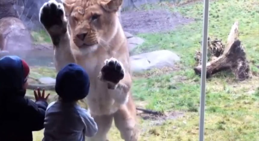 動物園にて、ガラスの向こうにいる動物たちも、気分次第では人間の子どもに様々な営業をしてくれる。その動きに合わせて遊んでくれたり、猛獣とは何たるものなのかを教えてくれたり、襲ってくれたり食べようとしてくれたり。そんな動物園での子どもたちと動物たちの触れ合いの瞬間を1本の動画に収めた総集編を見てみることにしよう。