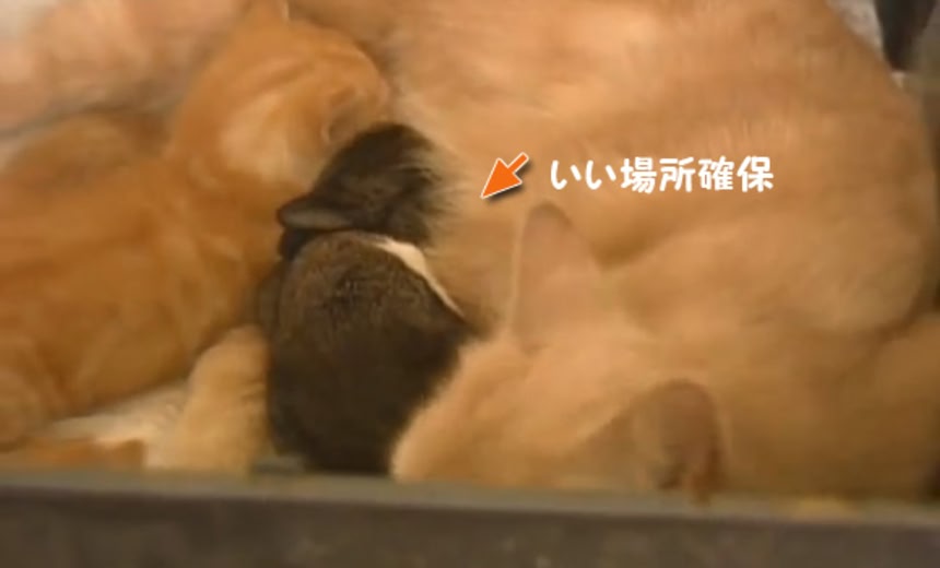 英国サウス・ヨークシャーにあるロザラムの町では、猫のスナグル・パスさんが、子育ての真っ最中。自らが生んだ4匹の子猫たちだけでなく、もう1匹、ウサギの赤ちゃんも平等にお世話をしている。