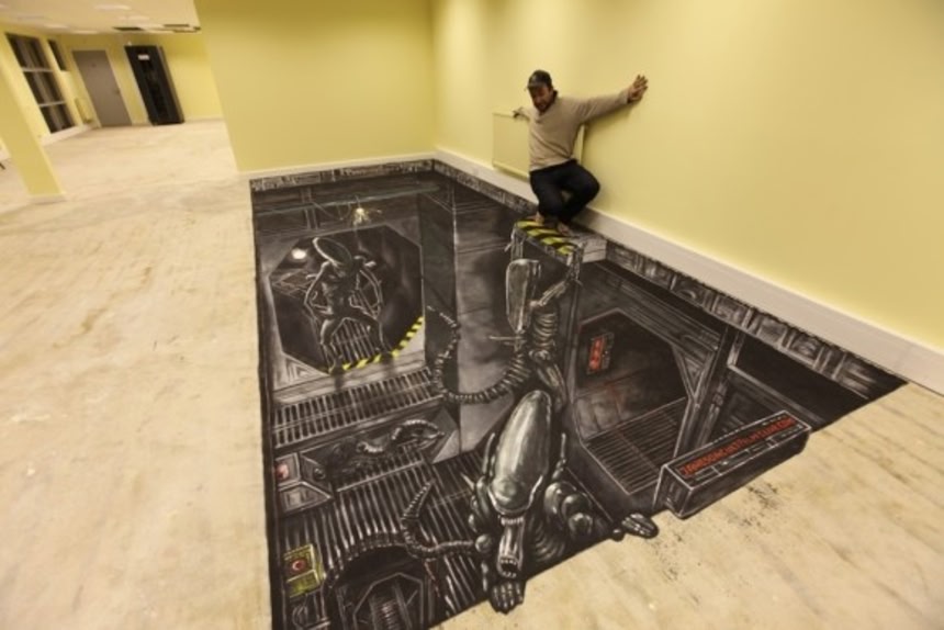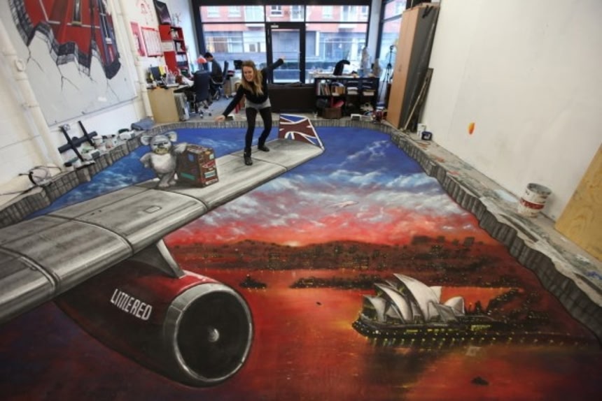 世界的に有名な3Dペインターのジョー&マックスによる錯視的立体プリント。こうやって写真にしちゃうと、凄い立体感で引き込まれていくようだ。