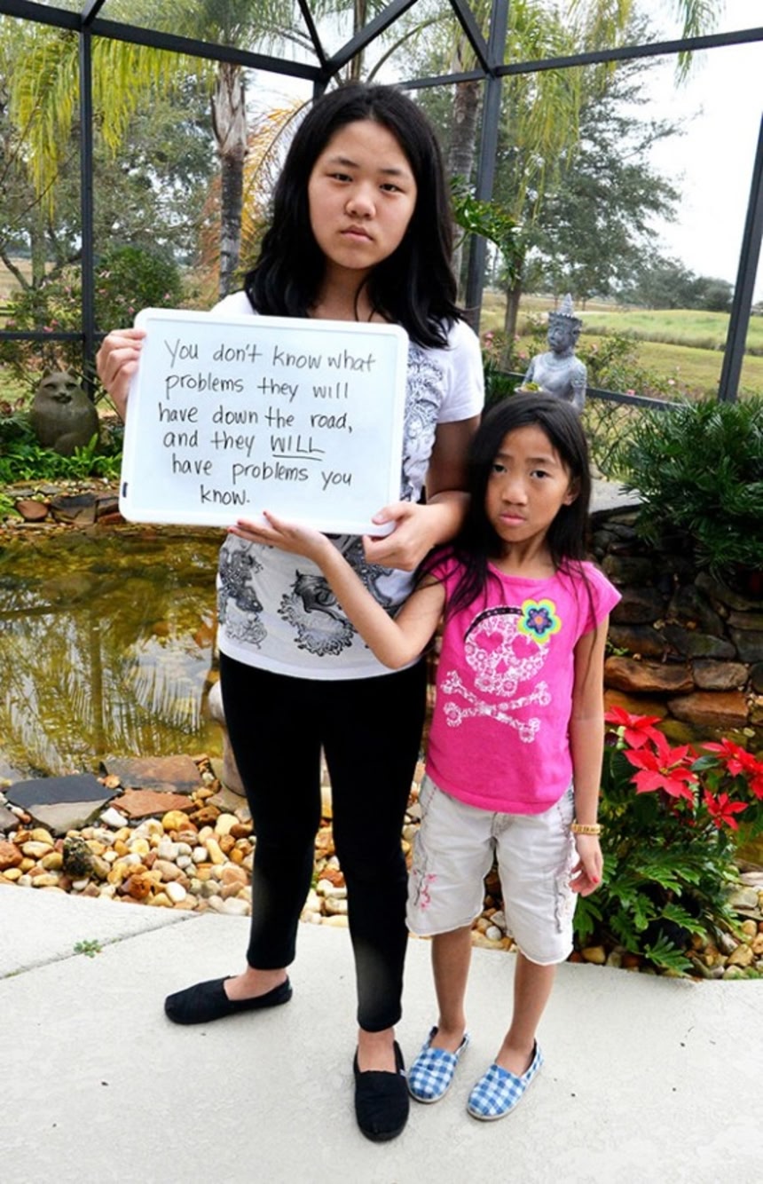 この画像を大きなサイズで見るワグナーさんは娘たちに、こうしたことを言った人たちは本気で言ったのではなく、事情もよくわからないまま、何の気なしに言っただけだと説明しようとしてきた。だから、これらの写真をここにアップした。言葉には力があり、ときにそれは道具にもなり、武器にもなる。特に子供は大人以上にこういった言葉に敏感であり、生涯忘れがたい言葉となってしまう。何気ない一言が誰かの心に刃物のように突き刺さることもあるのだ。そしてその刃物は、ブーメランのようにいつか確実に自分へと戻ってくる。