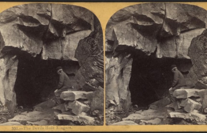 この画像を大きなサイズで見るナイアガラ峡谷にあるデビルズホールは、現地の言い伝えと忌まわしい歴史が混ざり合い、ニューヨークの西で最ものろわれた場所と呼ばれている。現地住民のイロコイ族は、この穴には悪魔のように恐ろしい蛇が住み着いていると語り、その物語に触発されてこの穴を訪れた人々は、帰らぬ人となったり、恐怖のあまり白髪で生還したりした。