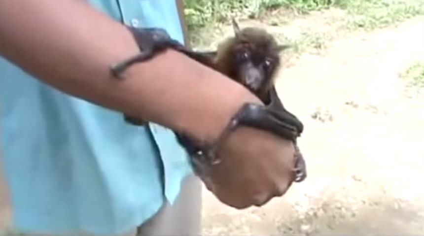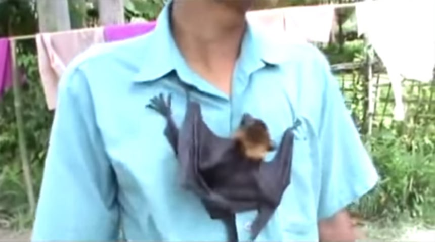 コウモリがここまでひとなつこいとはびっくり&キュート。インド人の男性がペットとして飼っているコウモリなのだが、手乗り技はもちろんのこと、男性の手からひゅーんと飛んだり、地面を張って男性のもとによってきたり、男性の体にすりよってきては、ガシガシと体にバッジのようにひっつくのだそうだ。