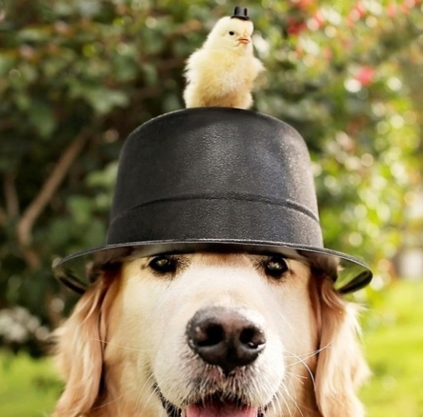 写真投稿サイト、インスタグラムで大人気のゴールデンレトリバーのチャンプさん(11歳・オス)は、現在ヒヨコたちのベビーシッターとして活躍中なのだそうだ。