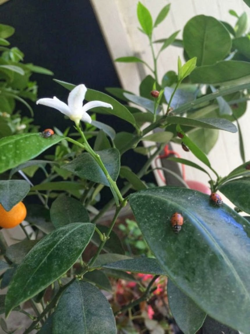 そんな屋内の鉢植えに放しても即刻アブラムシ食いつくして飢餓のテントウ虫王国になるやん