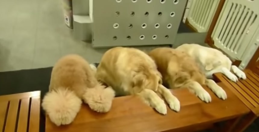 3番目のレトリバーちゃんのお間抜け加減が可愛い~