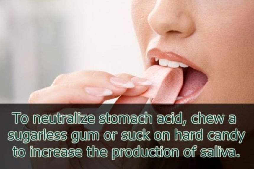 この画像を大きなサイズで見る2. 胃酸を中和するには、シュガーレスガムを噛むか、キャンディを舐めて、唾液の分泌を促すといい。