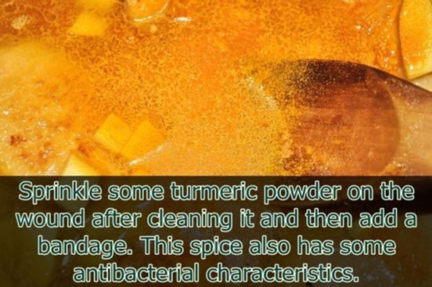 この画像を大きなサイズで見る6.ターメリックには抗菌作用があるので、傷口を消毒した後でこれをふりかけて、バンドエイドをするといい。