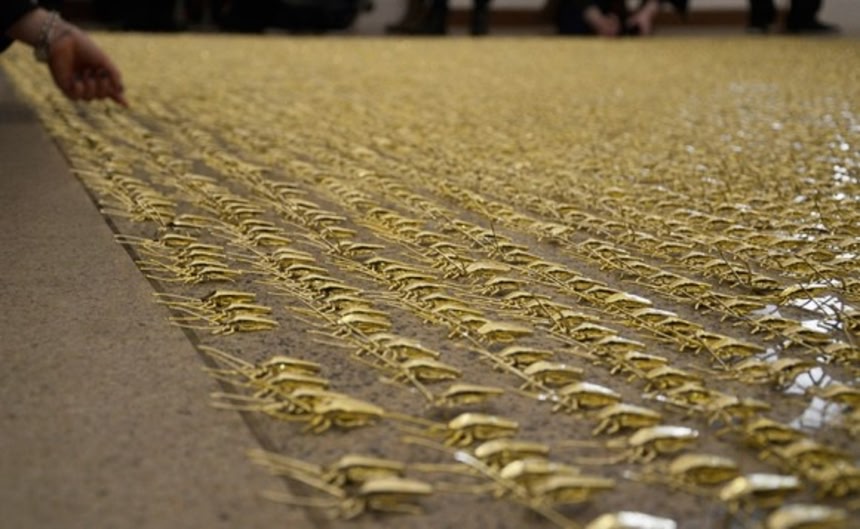 ハンガリー、ブタペスト在住のアーティスト、ミクローシュ・キスのゲリラアートは、世界各地の美術館に黄金に輝く14Kのゴキブリを配置していくというもの。「黄金のゴキブリプロジェクト」と呼ばれるこのアートは、まるで茶色のゴキブリのごとく、美術館の床にしれっと黄金ゴキブリを設置したり、あるいは大量に並べて展示するというものだ。