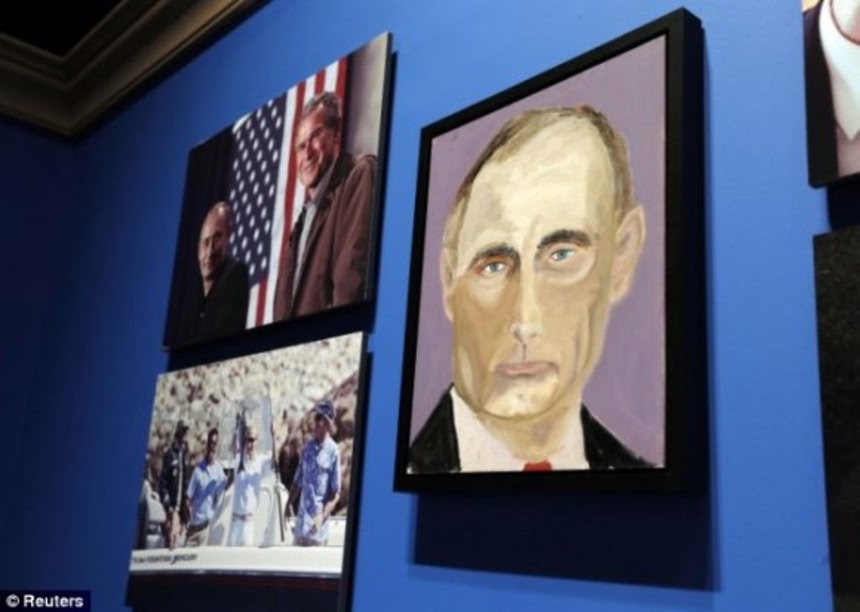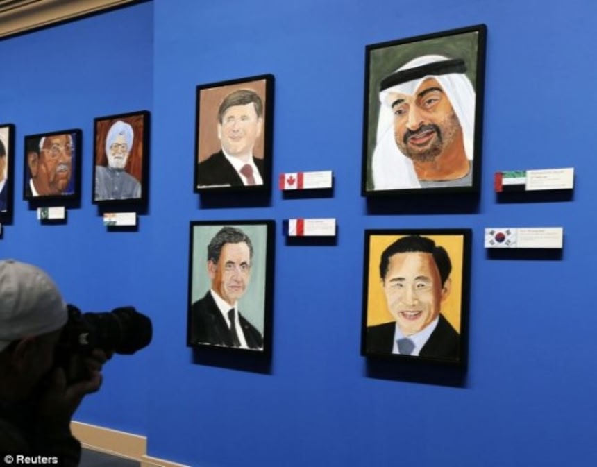 この画像を大きなサイズで見る第43代アメリカ合衆国大統領であるジョージ・W・ブッシュ(67歳)が、テキサス州にある大統領図書館で個展を開き、世界の指導者24人の肖像画を披露した。ブッシュ氏は大統領を退きホワイトハウスを出た時から絵を描き始めた。ブッシュ氏は、決して自分のことをうまいとは思ってないが、それでも続けていくうちに上達はしていると思っているそうだ。