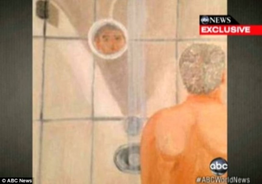 この画像を大きなサイズで見るそして去年、彼の絵が何者かによってリークされた。その中にはお風呂に入っている自画像や鏡に向かっている自画像が含まれていた。「とても悩んだよ。」ブッシュ氏は言う。「プライバシーの侵害だし、僕は自分の絵を誰にも見せたくなかった。」「本当のことをいうと、僕はまだ絵を習っている身だし外にだせるようなものじゃないんだ。これがちゃんとした絵になってるのかどうかもよくわからない。」