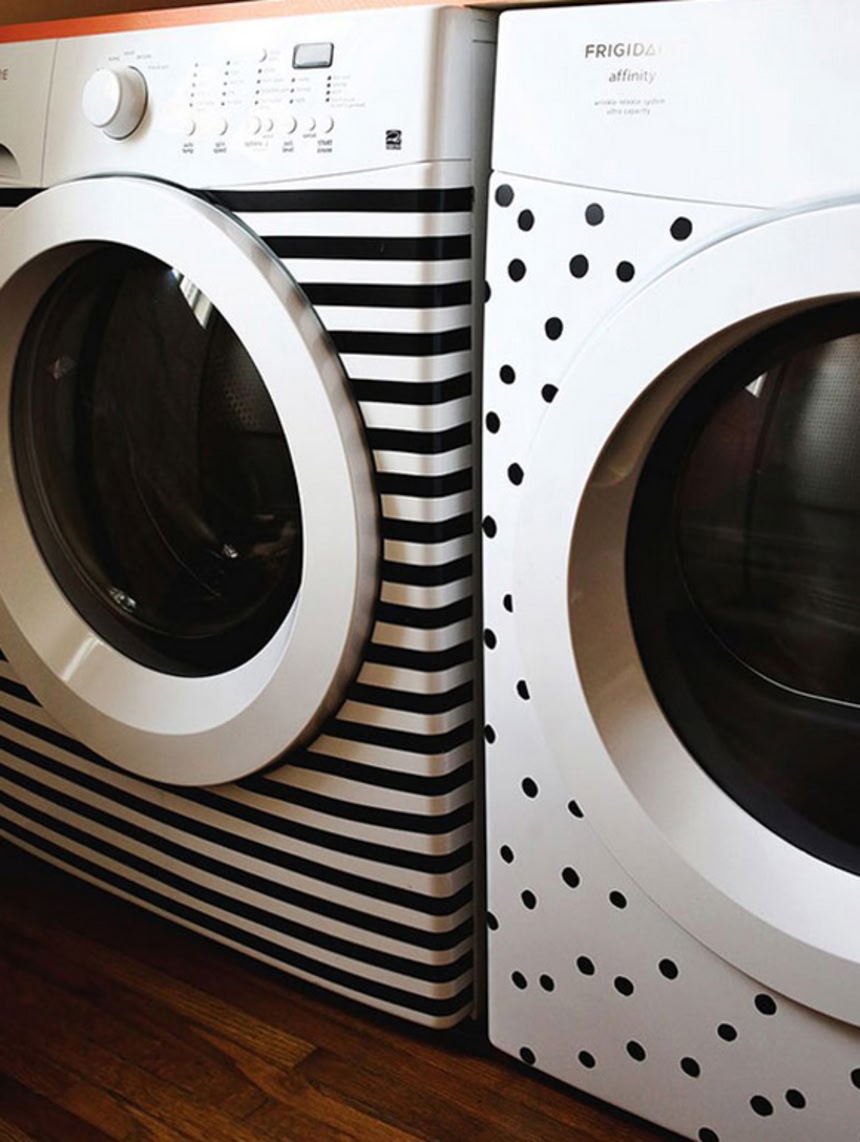この画像を大きなサイズで見る■20.洗濯機、乾燥機、冷蔵庫などはテープや壁紙用シールを使ってアレンジ