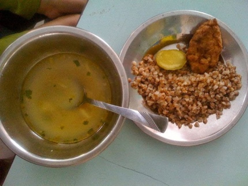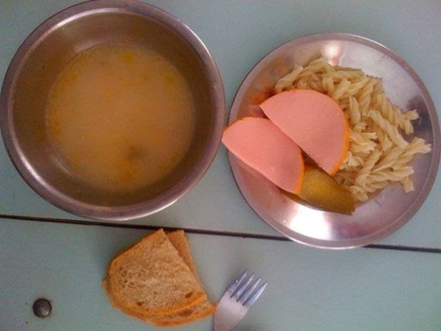 アルマイトの食器、なまぬるいおかず、べしょべしょのご飯、