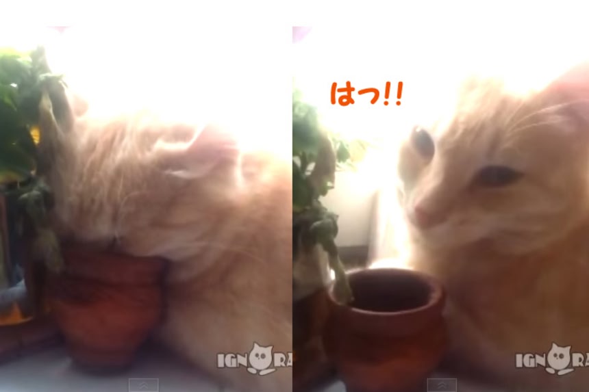 この画像を大きなサイズで見る小さすぎる植木鉢に顔をつっこんで寝。