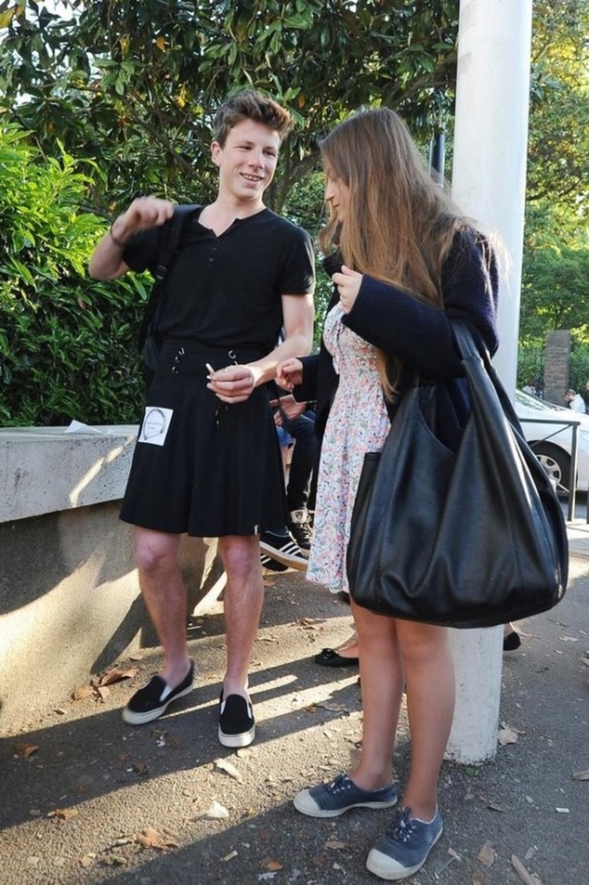 この画像を大きなサイズで見るフランス西部にあるナント市では、性差別撲滅キャンペーンの一環として、今月16日(先週金曜)、女子はもちろん、男性教師や男子生徒にスカートをはいて登校することを推奨する「Lift the Skirt(Ce que souleve la jupe)」が行われた。