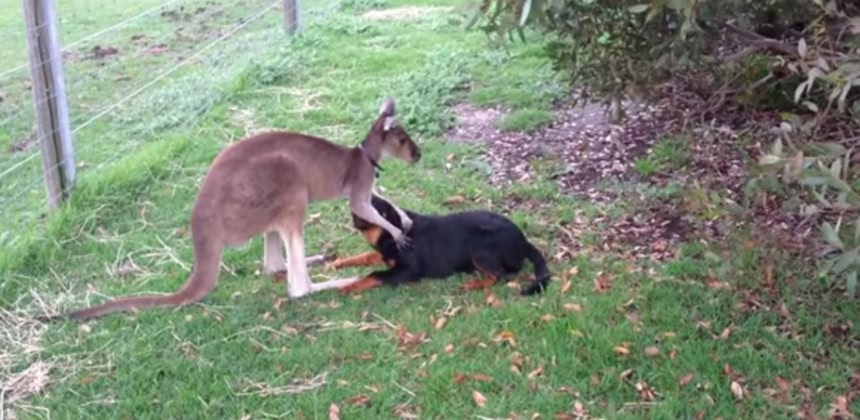 カンガルーが犬の後ろを取った時の間が双方どう出るか・・