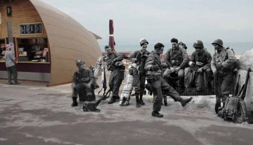 この手法は様々な写真家が手掛けており、前にもいくつか紹介しているが、今回は、warhistoryonline.comの創設者である、写真家のジャック・ベケット氏が作り上げた、第二次世界大戦中の兵士たちと現在の風景を組み合わせた写真を見ていくことにしよう。