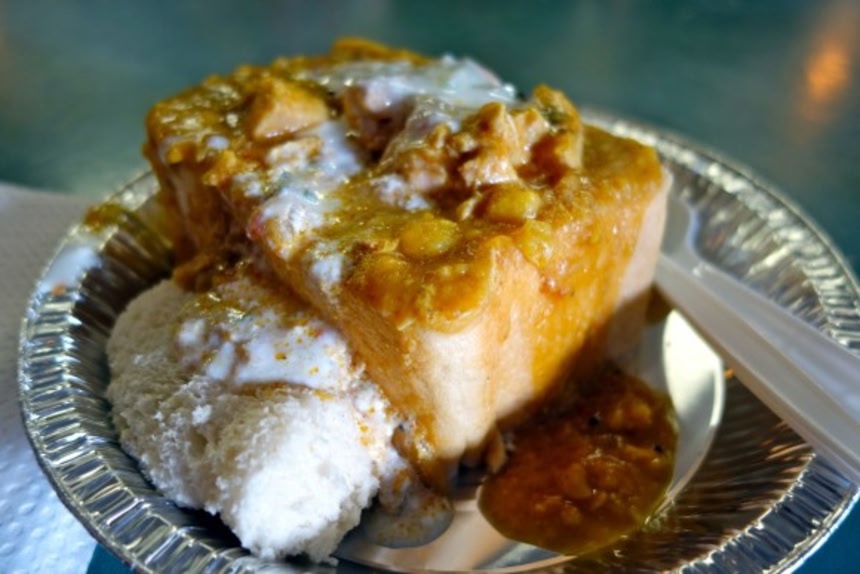 この画像を大きなサイズで見る中をくりぬいたパンの中にカレーを入れたもの。インド生まれだが、南アのダーバンでもっとも有名なストリートフード。チキンからマトンまで、スパイスのきいたさまざまなフィリングを使う。