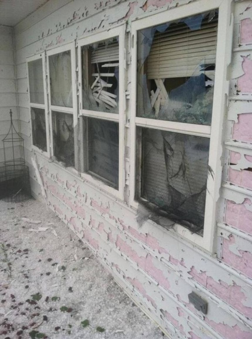 暴風雨、嵐、雹のコンボで家の壁はこのような有様に