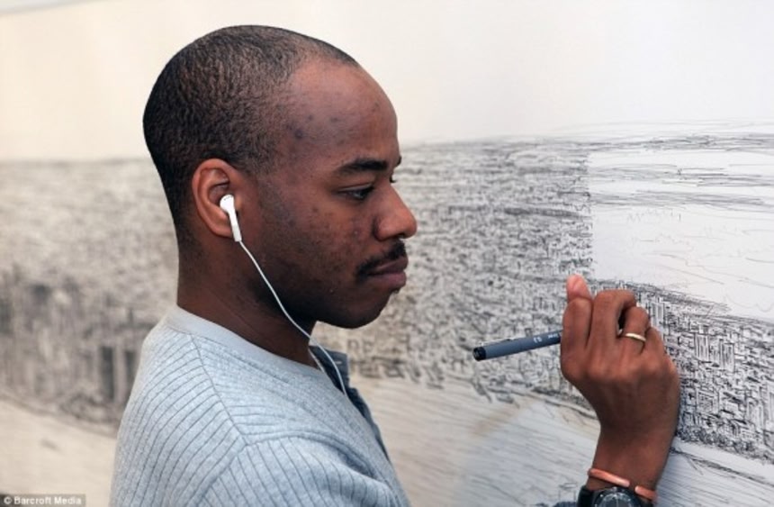 この画像を大きなサイズで見るスティーヴン・ウィルトシアは、子供の頃、自閉症と診断され、特別支援学校に入れられた。ここで、彼は絵を描くことに熱中した。子供時代は、自分の描いた動物や乗り物や建物、風景などを通して、意志疎通をはかり、やっと9歳で話すことを学んだ。