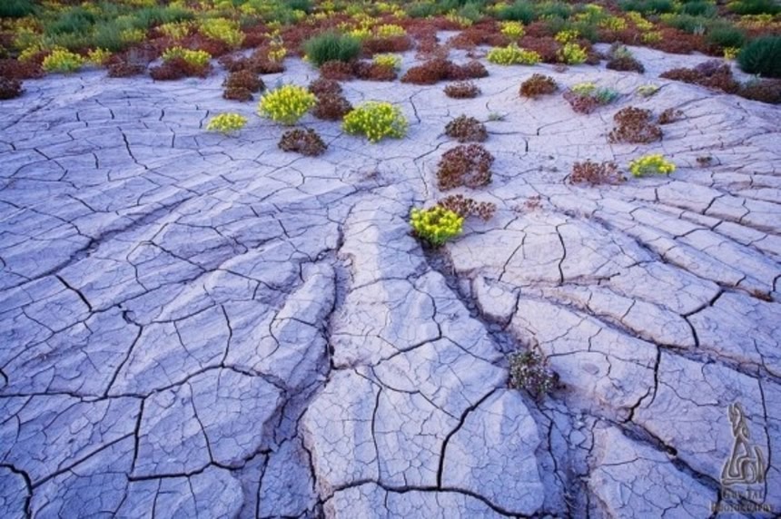 数年に1度、一定の条件がそろうと、紫色の顕花植物、スコーピオンウィード(Phacelia crenulata)と、黄色の花を咲かせるピンクッションサボテンが、地面の割れた隙間から小さき花を一斉に咲かせるという。まさに奇跡のカーペットなのである。