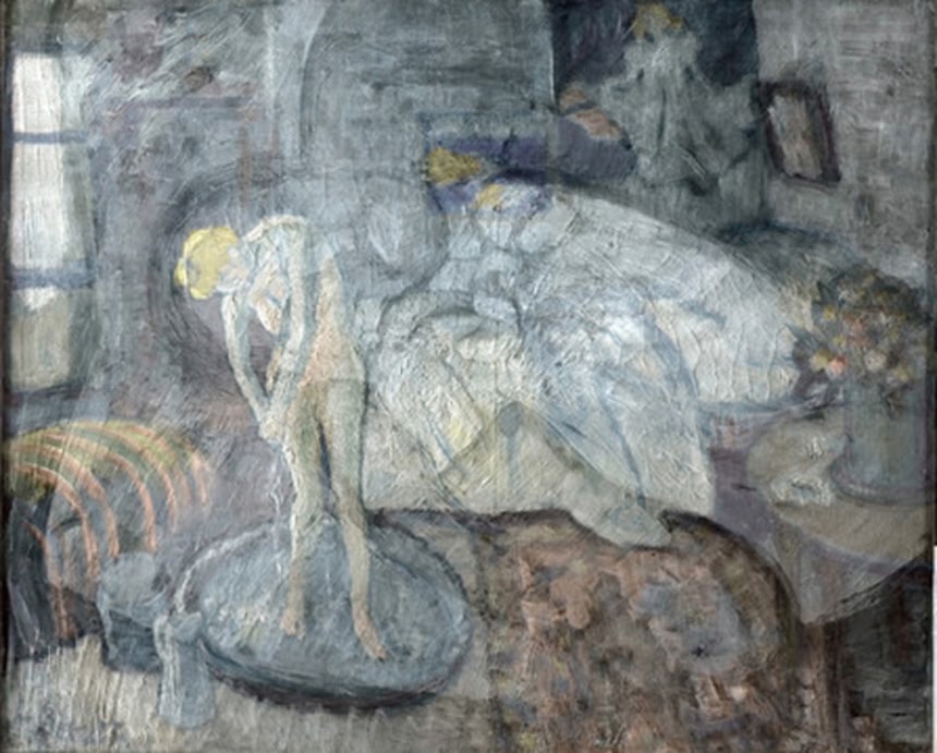 この画像を大きなサイズで見るピカソが1901年に描いた作品「青い部屋」にひげを生やした男性を描いた別のピカソの絵が隠されていることが判明した。2008年には絵画の赤外線解析が行われ、「青い部屋」の裏に別の絵画が隠されていることが分かっていたが、最近行われた顔料の分析によって明確となった。